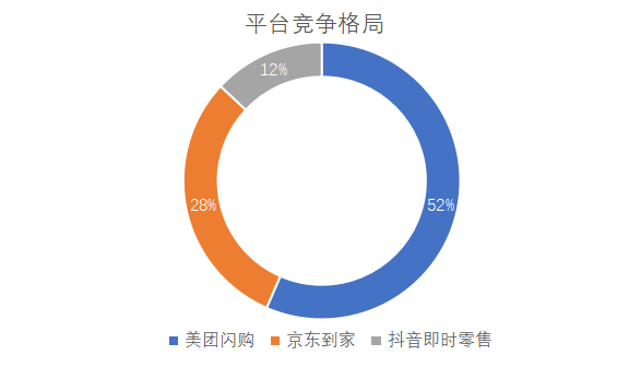 平台竞争格局:美团闪购占比 52%,京东到家占 28%,抖音即时零售占 12%,新兴平台通过 “直播 + 即时配送” 快速崛起,平台竞争格局刷新。
